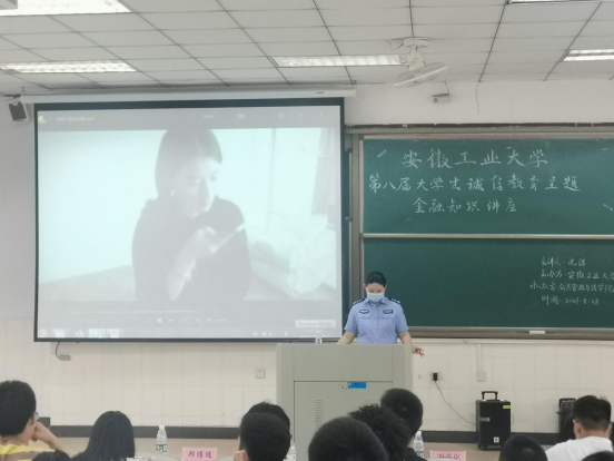 5月28日上午,公司在东校区阶教105开展了“融诚于党,信教于史”诚信金融知识讲座,各公司代表参加,花山公安分局政工科沈洁警官主讲。