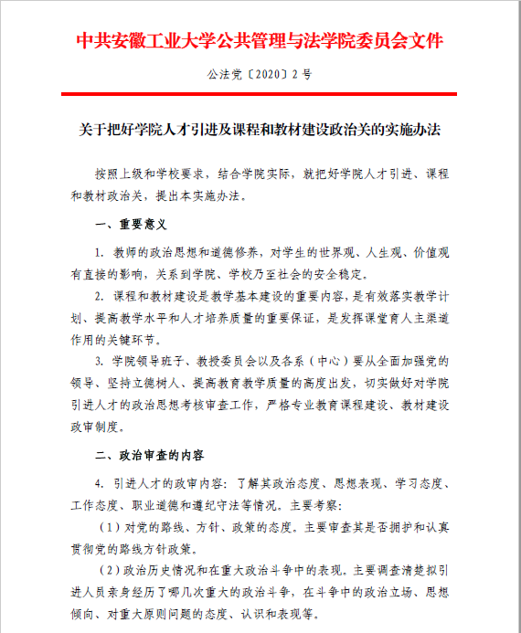 关于把好公司人才引进及课程和教材建设政治关的实施办法