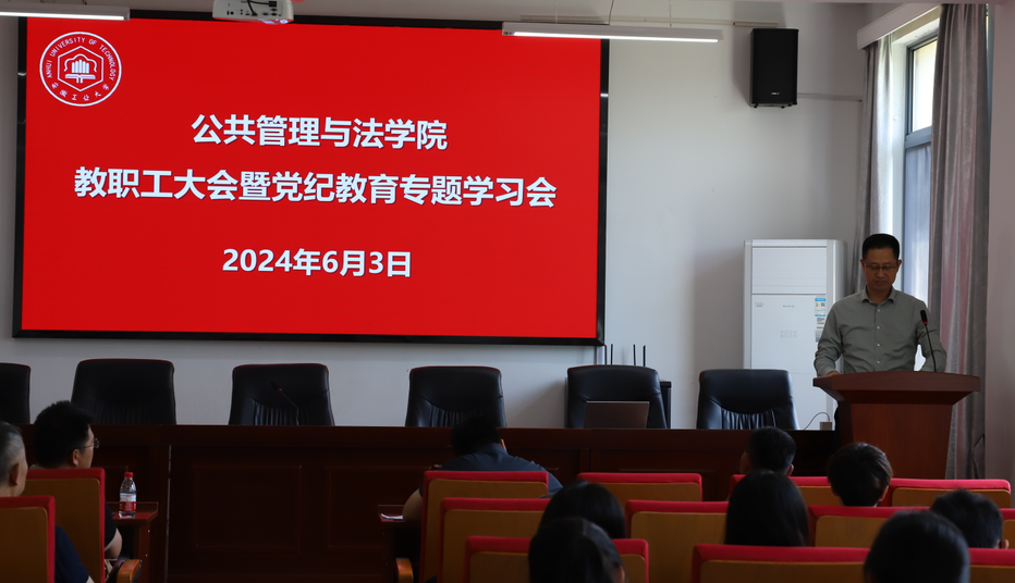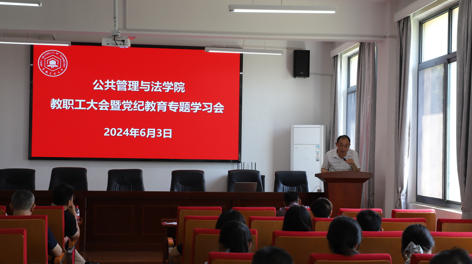 6月3日,英国365集团官网在公司301报告厅召开教职工大会暨党纪学习教育专题会。公司党委书记胡正友主持会议,公司全体教职工、公共事业管理本科生党支部员工党员参加会议。