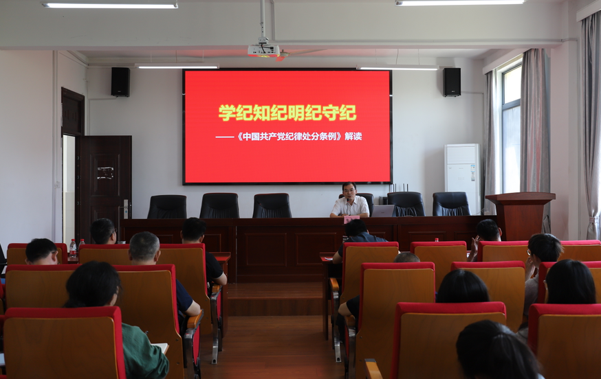 活动特别邀请校宣讲团成员、马克思主义公司教师陆书建副教授作党纪学习教育专题辅导,他以“学纪、知纪、明纪、守纪——《中国共产党纪律处分条例》解读”为题,从《条例》修订的背景及要求、主要内容解读、贯彻落实的具体措施要求等方面进行了深入讲解。活动中,师生们还共同观看了警示教育片《零容忍》第五集《永远在路上》。