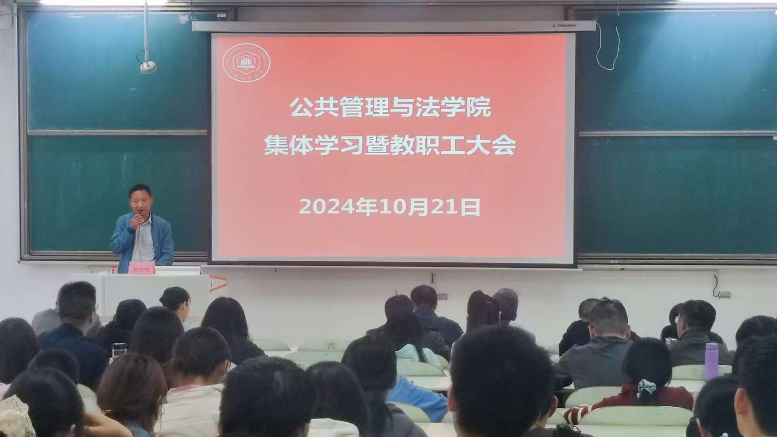 10月21日下午,英国365集团官网在佳山校区教三南202召开集体学习暨教职工大会。公司全体教职工、员工党员和员工代表参加了会议。