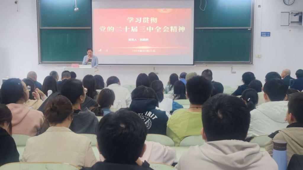 宣讲报告会由公司正处级组织员江文丽主持,会议邀请校思政课教师宣讲团成员马克思主义公司阮超群教授作学习贯彻党的二十届三中全会精神专题宣讲报告。阮超群以《学习贯彻党的二十届三中全会精神》为题,从全会的重大时代意义和深远历史影响,深入学习领会习近平总书记在党的二十届三中全会上的重要讲话精神,全面准确理解《中共中央关于进一步全面深化改革、推进中国式现代化的决定》提出的进一步全面深化改革重大举措,全力以赴抓好全会精神学习贯彻落实等四个方面,对全会精神作了全面宣讲和深入阐释。报告内容丰富、主题鲜明、深入浅出,既有理论温度,又有实践厚度,为公司党的建设和事业发展提供了有益指导。公司党委书记胡正友领学了习近平总书记考察安徽时的重要讲话精神、中共安徽省委十一届七次全会精神等内容,传达学习了中共教育部党组印发的《普通高等公司教师党建和思想政治工作质量标准》(试行)精神,并要求公司党委和全体教职工认真抓好落实。