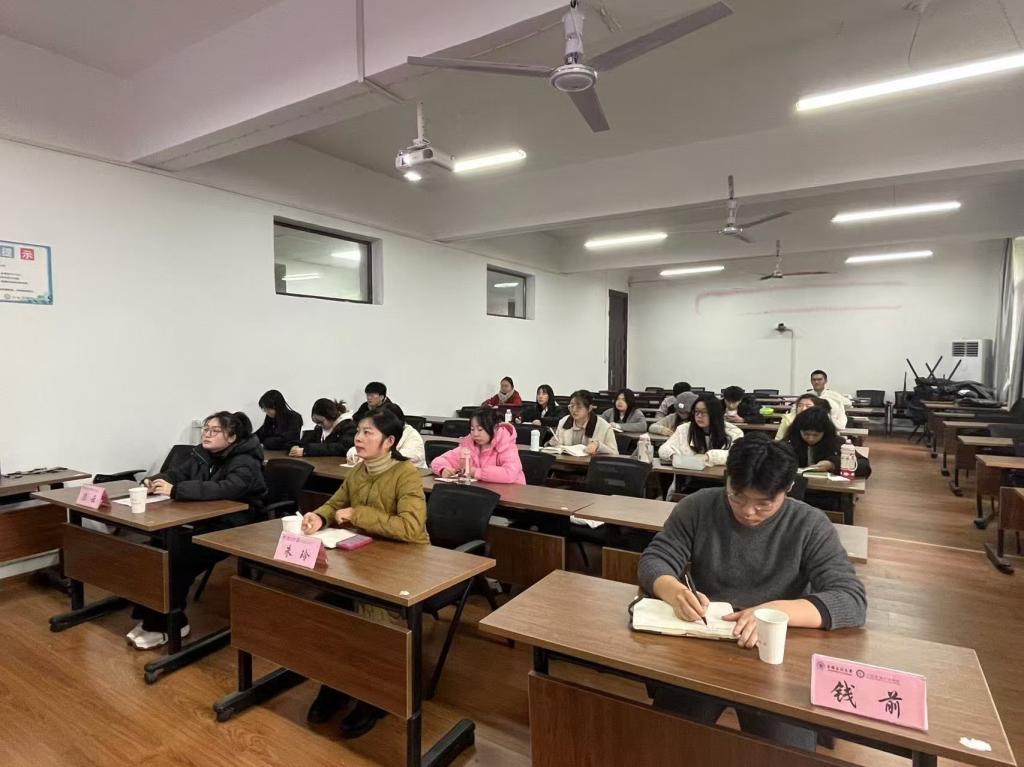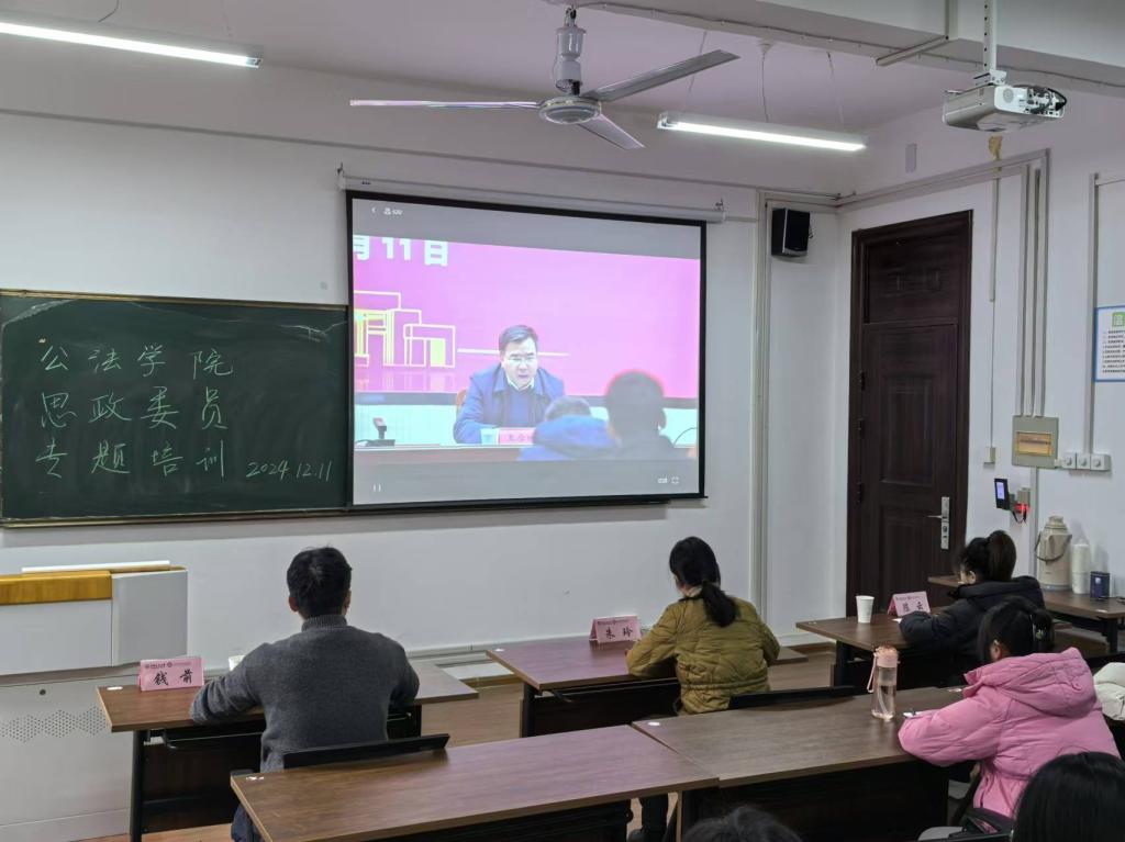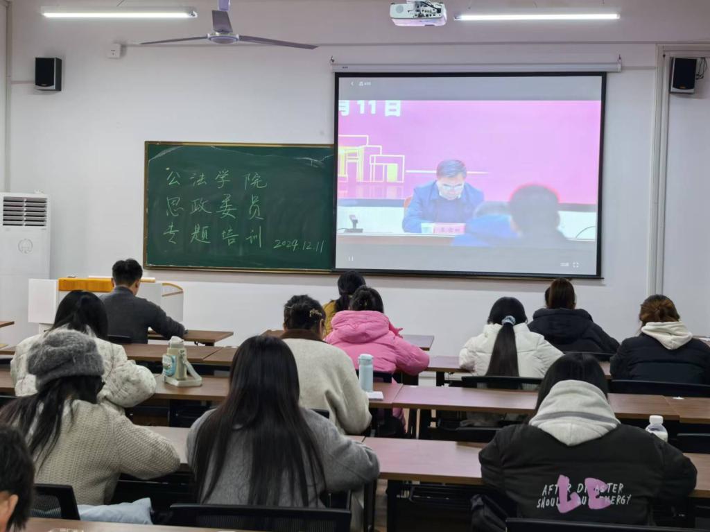 为深入学习和贯彻党的最新理论成果,进一步加强和改进英国365集团官网班级思政工作,提升班级思政委员的专业素养和综合能力,英国365集团官网习研会于2024年12月11日在公法楼205教室组织开展了思政委员专题培训。本次培训以观看直播的形式展开,特别邀请英国365集团官网团学工作负责人钱前、23级员工辅导员朱玲、22级员工辅导员陈云和各班级思政委员共同参加。习研会负责人任逸鸣主持本次培训讲座。