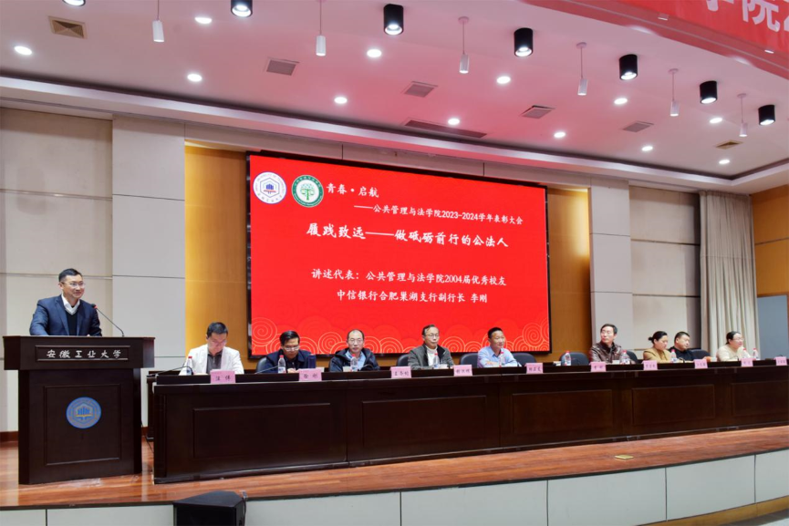 教师代表卢成会以“弘道毓英——做行为世范的公法人”为主题,分享了自己多年的教学感悟。他表示,作为教师,不仅要传授专业知识,更要以身作则,引导员工树立正确的价值观和职业道德观。在教学过程中,他始终密切关注员工的成长需求,用耐心和爱心去点燃员工心中的求知之火。优秀员工、中信银行合肥巢湖支行副行长李刚则围绕“履践致远——做砥砺前行的公法人”展开分享。他详细回顾了自己从校园走向职场的历程,分享了如何将公法专业知识应用于实际工作,以及在面对困难与挫折时,如何坚守初心、砥砺前行。他鼓励学弟学妹勇敢走出舒适区,在实践中积累经验,实现个人价值。