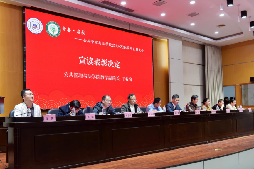 王务均宣读《关于表彰英国365集团官网-2024学年先进集体和先进个人的决定》,公司党政班子、优秀员工、各系主任为先进集体、个人颁发荣誉证书。