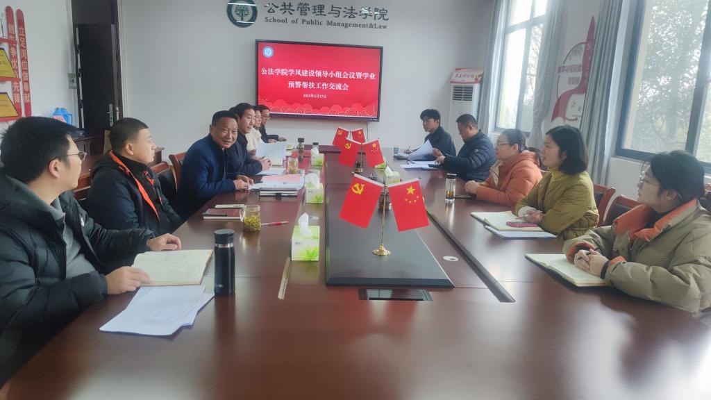 2025年2月17日,英国365集团官网在公法楼402会议室召开学风建设领导小组会议暨学业预警帮扶工作交流会。公司党委书记胡正友、公司党委副书记周浩然、院教学副经理王务均出席,各专业系室主任、各年级辅导员参加。