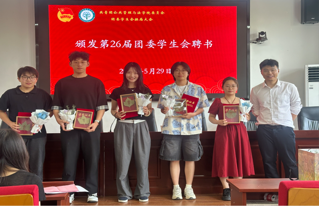 第26届院团委员工会各部门负责人依次对院第27届团委员工会成员发表寄语,分享了工作心得与感悟,并表达了对新一届员工会的祝福与期待,鼓励新成员们团结协作,积极进取,在未来的工作中再创佳绩。新一届员工会成员表示将不负重托,以饱满的热情和务实的态度投入到工作中,为公司师生提供更优质的服务,推动公司团学工作再上新台阶。大会还为第26届院团委员工会各部门负责人颁发聘书,并由新一届各部门负责人献花。