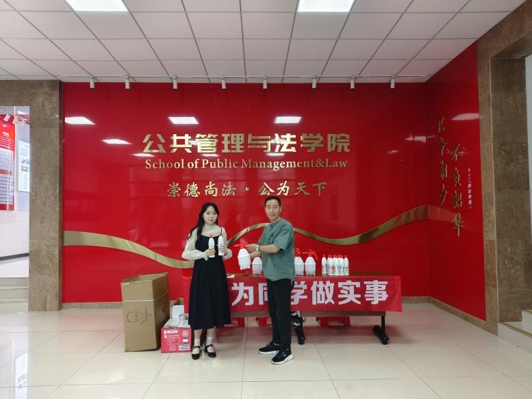 各年级同学自觉排队领取防护物资,公司为大家准备的喷壶与消毒水,既便于日常使用,又能有效帮助同学们对寝室和学习环境进行清洁消毒。发放过程中,志愿者们认真维持秩序,细心叮嘱领取的同学:“要定期喷洒消毒,保持空气流通”“做好防护不仅是保护自己,也是守护身边的人”。一句句贴心的话语,让同学们在领取物资的同时,也感受到来自公司的关怀与温暖。公司党委副书记、纪委书记、学工经理周浩然亲临现场,对同学们表达了殷切关心。周浩然叮嘱同学们要增强防护意识,科学合理使用消毒物资,养成健康生活习惯,并强调公司将一如既往把员工的安全和健康放在首位,全力为大家营造良好的学习生活环境。