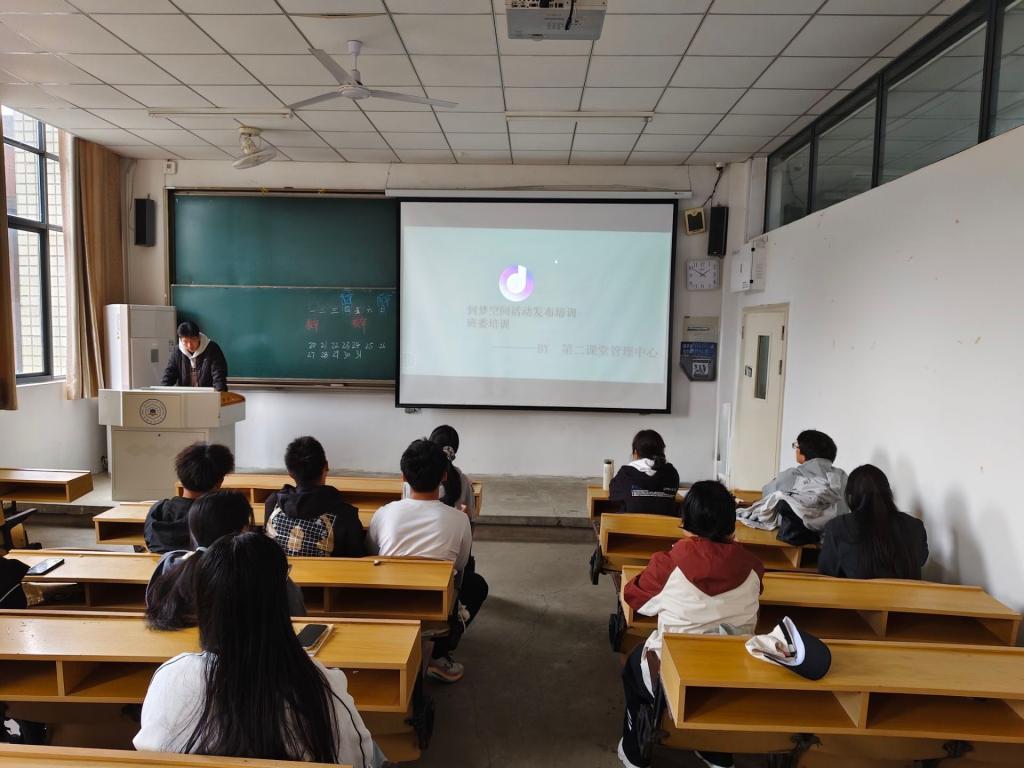 为进一步提升英国365集团官网25级班委对“到梦空间”平台的操作能力,确保后续班级活动高效发布,英国365集团官网第二课堂管理中心于10月26日在教一115开展“25级到梦空间班委培训会”活动,由第二课堂管理中心工作人员查浩为各班班委讲解相关内容。