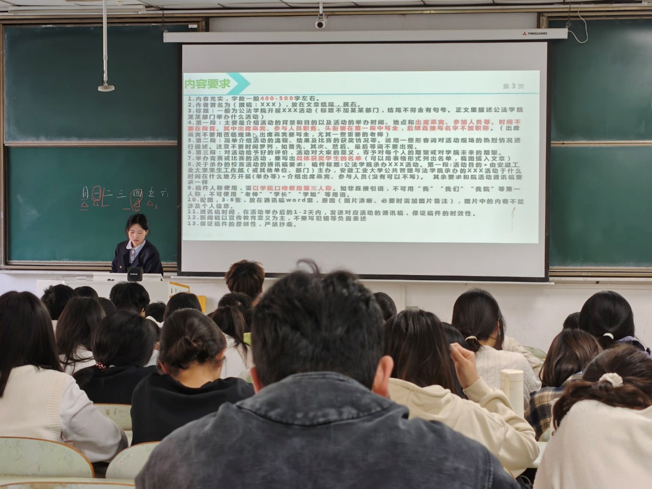 本次培训围绕通讯稿写作的核心要点,从内容架构、格式规范、语言表达、配图标准等维度逐层深入,涉及通讯稿内容,照片拍摄,字体字号等要求。孟瑞华结合公司通讯稿实例,拆解标题拟定、段落布局的技巧,强调通讯稿内容需采用背景目的、流程现场、意义评价的三段式结构,明确了内容充实、语言客观精炼的写作原则。同时针对赛事类稿件的获奖名单呈现、校赛承办类稿件的主体表述等特殊要求进行说明,补充了固定表述使用与照片拍摄及呈现的具体要求。培训会现场气氛专注热烈,参会人员认真记录要点,积极参与交流。