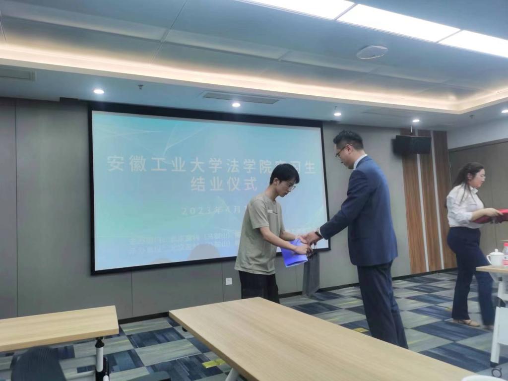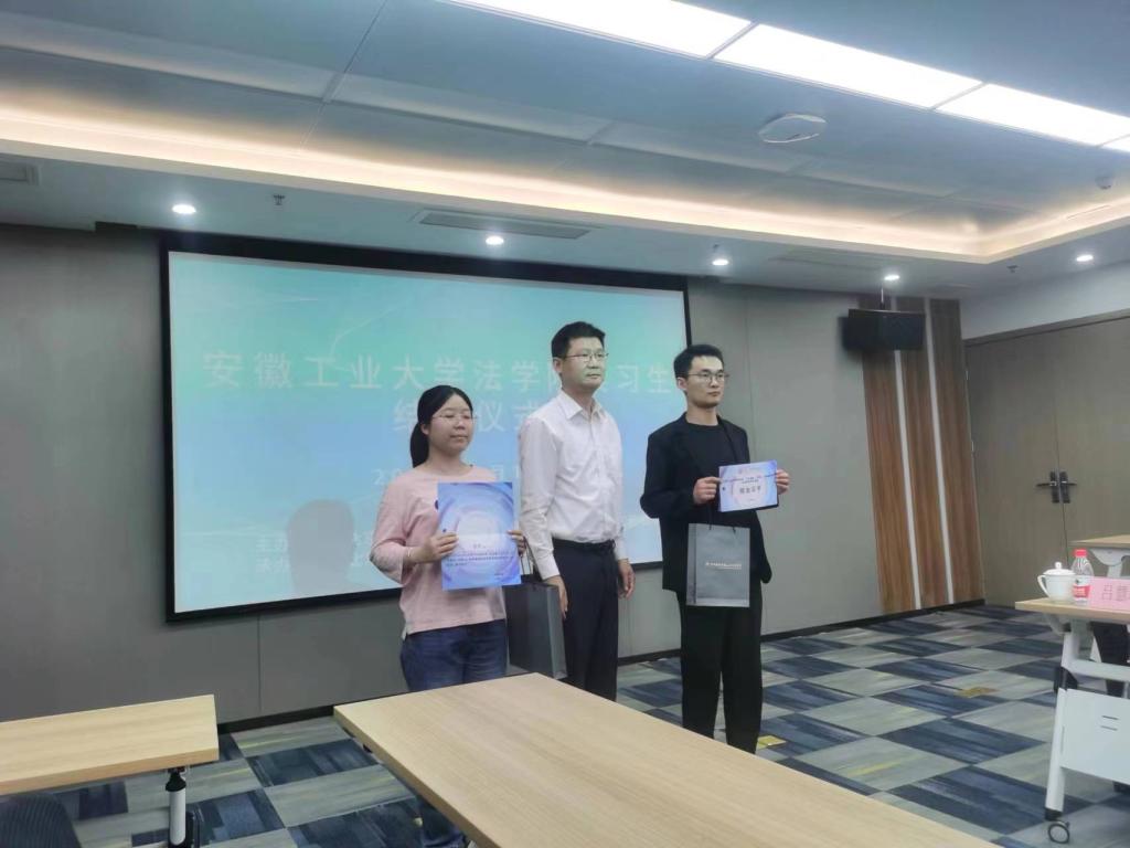 2023年4月18日英国365集团官网法学系法学专业本科毕业班9名同学顺利结束了在北京盈科(马鞍山)律师事务所为期一个月的毕业实习。盈科(马鞍山)律师事务所为此专门组织了一次结业仪式,并为员工们颁发了结业证书与结业礼。北京盈科(马鞍山)律师事务所管委会副主任、行业导师姜海平主持人结业仪式。盈科所党支部书记魏广金等领导及指导老师、英国365集团官网法学系主任徐刚、党支部书记戚枝淬应邀参加了结业仪式。仪式上,盈科所指导老师代表及实习员工代表分别进行了发言。结业仪式上双方还就加强进一步深化校企合作进行了交流。