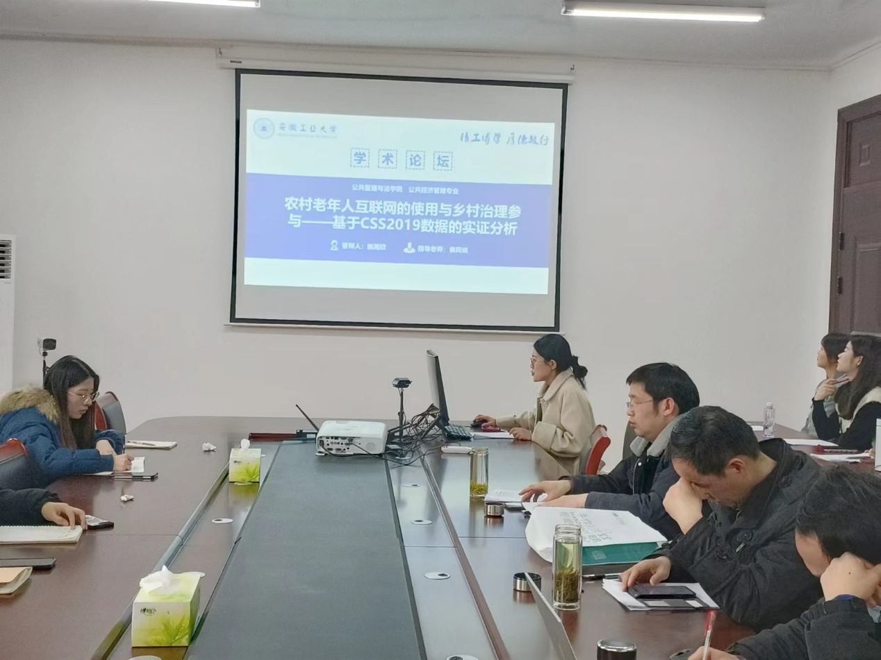 本次论坛分为三项流程,首先由研究生进行学术汇报,其次评阅老师进行专业点评,最后现场同学进行交流互动。三位汇报人均是2021级公共经济管理专业研究生,第一位汇报人是叶铭文同学,汇报主题为“大警种制改革背景下公安辅警职业倦怠与工作激励探讨”;第二位汇报人是宫宇馨同学,主题为“农民工返乡创业的影响因素分析”;第三位汇报人是施雨欣同学,主题为“农村老年人的互联网使用与乡村治理参与——基于CSS2019数据的实证分析”。报告后,三位评阅老师对同学的汇报进行点评并为同学们提出意见,同学们也进行了现场互动交流学习。