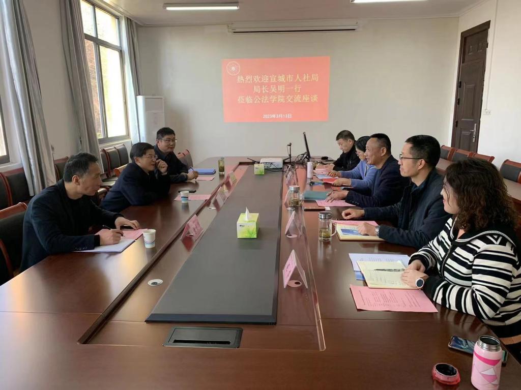 3月13日下午,宣城市委组织部副部长、市人社局党组书记、局长吴明,宣城市人社局公共就业(人才)服务中心主任冯新年、宣城市人社局公共就业(人才)服务中心市场科科长袁庆华一行来院围绕就业拓岗进行交流座谈。学公司党委书记胡正友,经理徐济益,公司党委副书记、副经理李萍,公共事业管理系主任邵宁以及毕业班辅导员妮萨参加了交流会。交流座谈会由胡正友主持。
