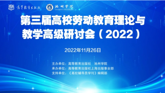 2022年11月26日,高等教育出版社与池州公司举办第三届高校劳动教育理论与教学高级研讨会(2022),会议采取线上与线下相结合的形式召开。