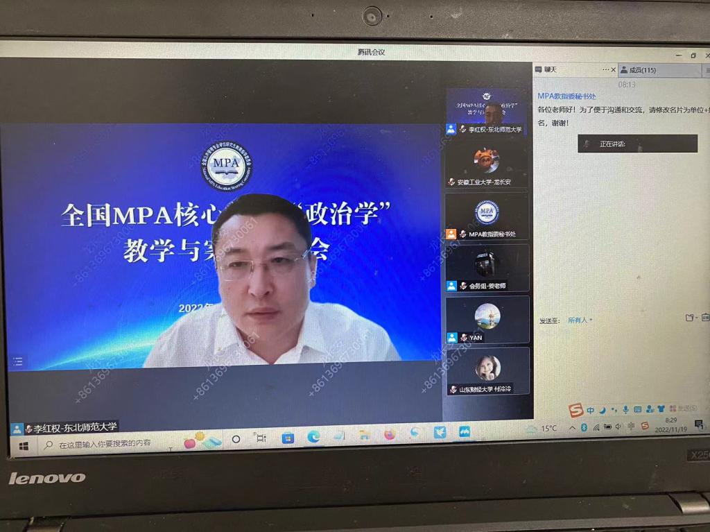 为学习贯彻落实党的二十大精神,进一步优化并改进MPA核心课程教学内容和方法,探讨学科最新研究动态,提升课堂教学效果,全国公共管理专业学位研究生教育指导委员会于11月19-20日举办了全国MPA核心课程“政治学”教学与案例研讨会。本次研讨会通过腾讯会议平台进行。公司《政治学》课程授课教师龙长安参加了培训会议。