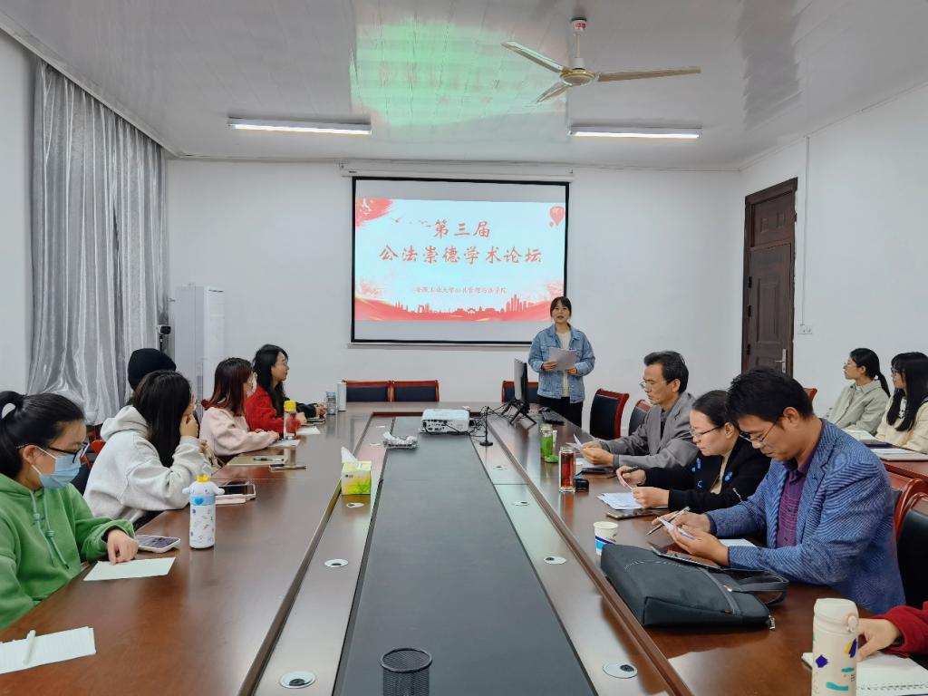 为营造良好的学术氛围,提高员工专业能力和学术水平,公司于10月28日下午举行公法第十期崇德学术论坛活动。本次论坛由2021级公共经济管理专业研究生刘贝贝主持,杨哲老师、许克祥老师与吴丽丽老师进行评阅,公司研究生以及感兴趣本科生参与旁听。