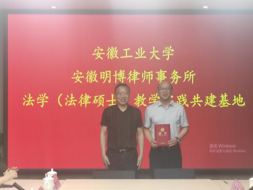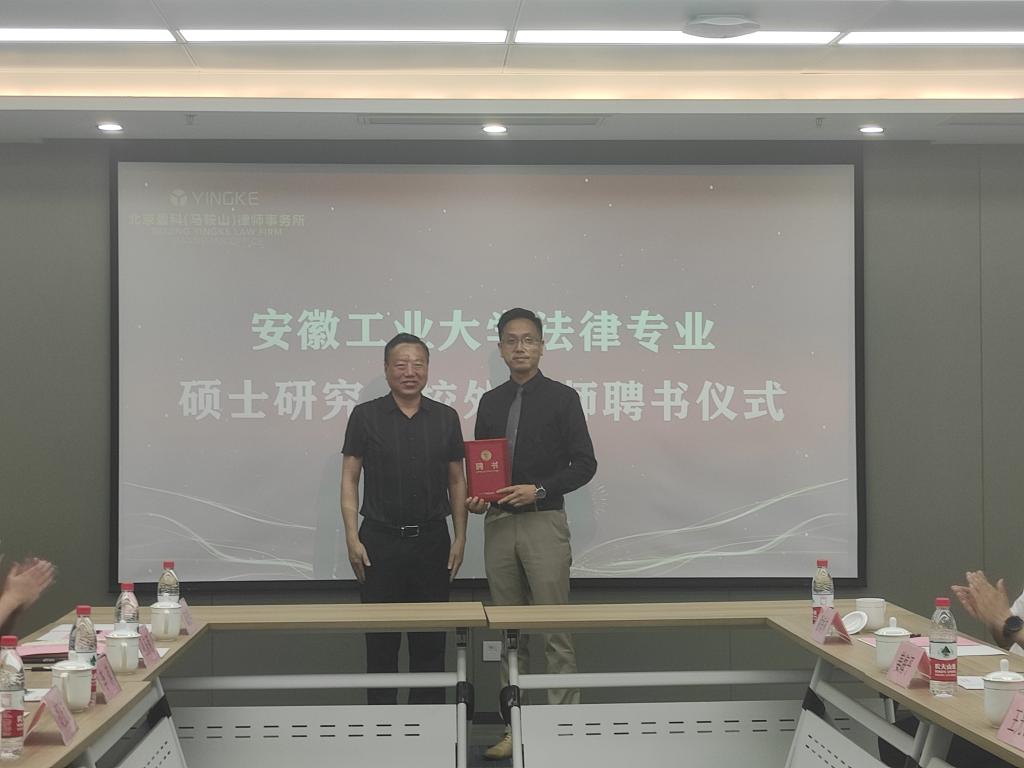 活动中,祖明分别与三家律师事务所负责人一起为法学(法律硕士)共建基地揭牌,分别向原安徽省律师协会副会长、安徽长城律师事务所创始合伙人李仁厅,北京盈科(马鞍山)律师事务所管委会副主任姜海平,马鞍山市律师协会会长、安徽明博律师事务所创始合伙人陈熙平颁发了公司兼职研究生导师聘任证书,公司与三家律师事务所就下一步开展人才培养、员工实习实训、社会公益活动等方面达成了一定共识。祖明强调,公司将进一步落实“访企拓岗促就业”工作,进一步强化校企合作,探索建立常态化交流互动机制,实现毕业生高质量就业,为服务地方经济发展作出更大贡献。