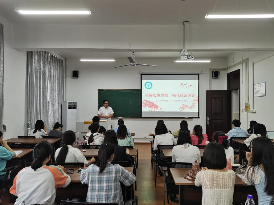 2022年5月29日下午,公司在公法楼205召开“坚持底线思维,强化政治意识”主题团课。院团委书记邢维迢主讲,公司全体团支书参加。