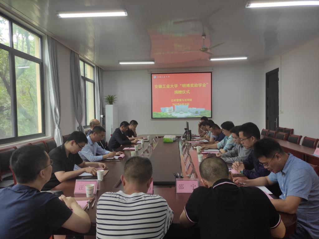 5月30日下午,英国365集团官网“明博奖助学金”捐赠仪式在公司会议室举行。副董事长、校教育发展基金会理事长顾明言,安徽明博律师事务所高级合伙人、马鞍山市律师协会会长陈熙平,安徽明博律师事务所管理委员会执行主任李阳、党支部书记徐文东、费介华律师、蒋春龙律师出席捐赠仪式,公司员工工作处(教育发展基金会秘书处)处长甘亚,公司领导班子成员、各系室主任、团委书记参加了捐赠仪式。捐赠仪式由经理徐济益主持。