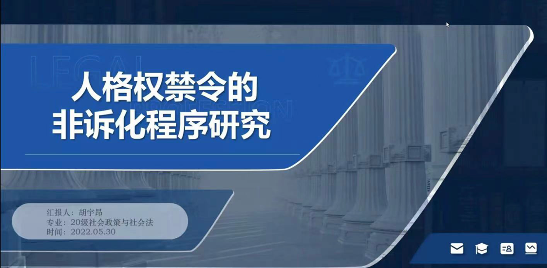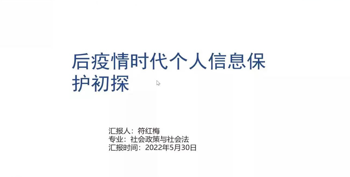 为了活跃学术气氛,激发员工的创新意识和创新能力,展示近期学习成果,公司于2022年5月30日19时开展了线上公法崇德学术论坛(九)活动。本次论坛由2021级社会政策与社会法专业硕士研究生黄静主持,由李青老师、孔东菊老师、戚枝淬老师进行评阅,公司研究生以及感兴趣本科生参与旁听讨论。