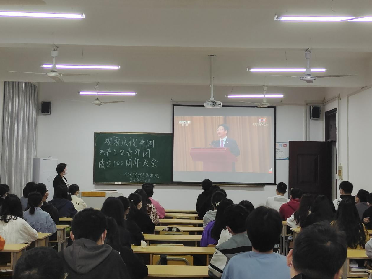 公司在公法楼201组织院团委员工会成员、新疆员工代表、入党积极分子代表和员工代表在妮萨老师的带领下线下观看“庆祝中国共产主义青年团成立100周年大会特别报道”。在全场热烈掌声中,习近平总书记发表了重要讲话。与会人员观看直播时全神贯注,认真记录,对总书记的重要讲话产生强烈共鸣,会议室不时报以热烈的掌声。同时,公法师生们通过广播电视、网络视频等线上方式观看庆祝大会,学习习近平总书记关于建团百年重要讲话。