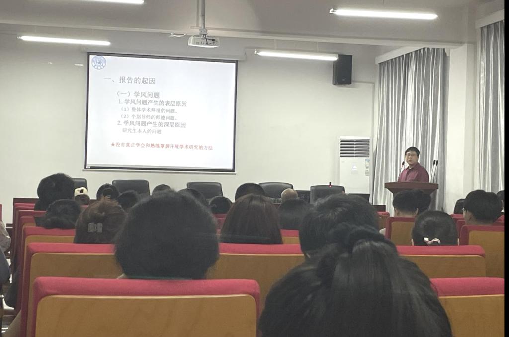 董教授首先就本次报告的起因展开论述,说明了受整体学术环境、个别导师师德、研究生本人问题等因素的影响,学术界普遍存在没有真正学会和熟练掌握开展学术研究的方法的学风问题,而这一问题在论文和项目评审中屡现。随后,董教授一针见血地指出,开展学术研究的基础在于读懂、读透经典著作,在此过程中要把握具体方法,以达到提升学术研究能力与水平的目标。董教授强调,学术研究的关键在于会做和善做文献综述,并就文献综述的前期准备、具体步骤和创新思路作出了详细说明。最后,董教授详细解答了部分同学提出的问题,并对同学们的问题意识表示肯定。