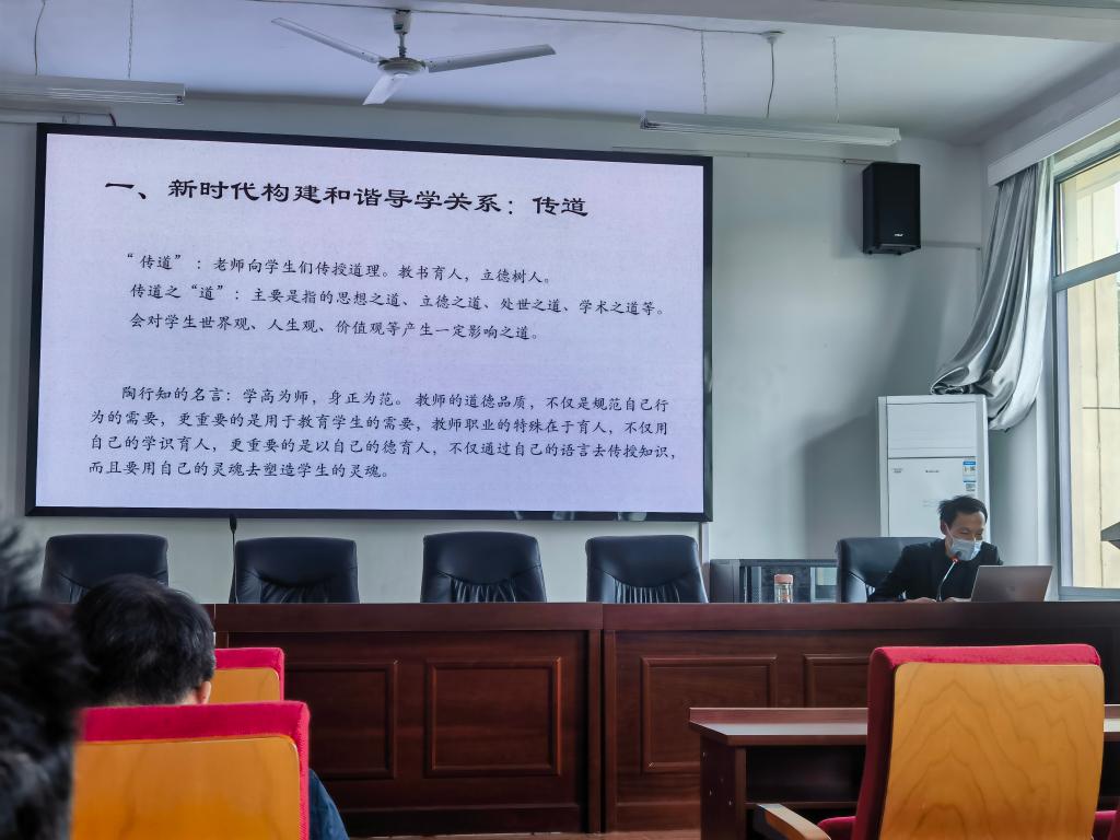 杨喜老师以“传道、授业、解惑:新时代构建和谐导学关系”为主题,就如何构建新时代和谐导、学关系与各位老师分享交流。通过结合高校导、学关系相关典型案例,分别从传道、授业、解惑三个层面解析了新时代构建和谐导、学关系。最后,杨老师分享了新时代构建和谐导、学关系与传道、授业、解惑三者相伴相生的内在联系。