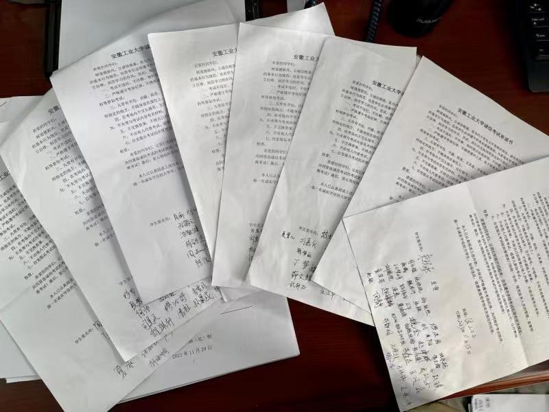 会后,就进一步加强考风考纪教育,各年级辅导员通过年级会、班会等形式对考风考纪等相关事宜进行了提醒,告诫同学们不要触碰违规违纪的红线,认真备考,诚信考试,并组织班级员工签订了诚信考试承诺书。