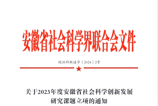 2024年2月5日,安徽省社会科学界联合会发布了《关于2023年度安徽省社会科学创新发展研究课题立项的通知》(皖社科联通字〔2024〕2号),公布了安徽省社会科学创新发展研究课题项目立项名单。公司房梁博士申报《混合财产视阈下我省住宅小区空间所有权及其法律治理问题研究》获得立项资助。
