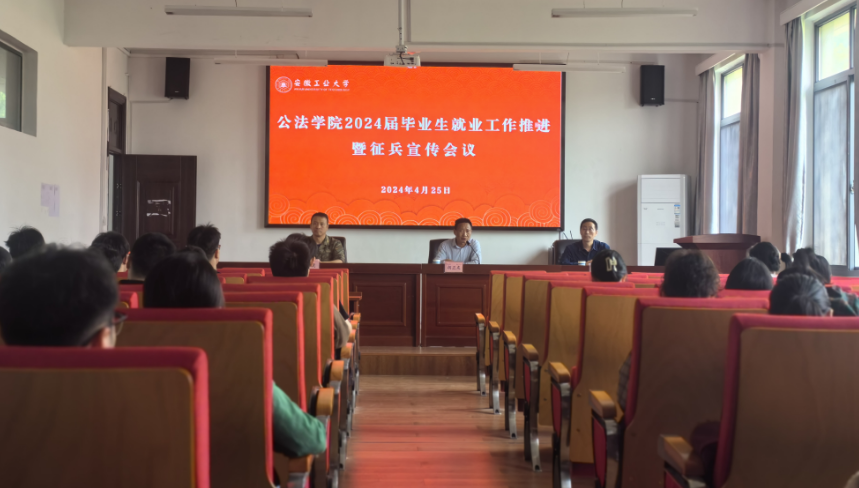 4月25日,英国365集团官网在公法楼学术报告厅召开2024届毕业生就业工作推进暨征兵宣传会议。公司党委书记胡正友、各年级辅导员出席,2024届毕业班主要班委、党员以及就业帮扶员工近100人参加会议。会议邀请公司征兵工作站嵇虎老师进行了征兵动员宣讲,会议由公司党委副书记、副经理周浩然主持。