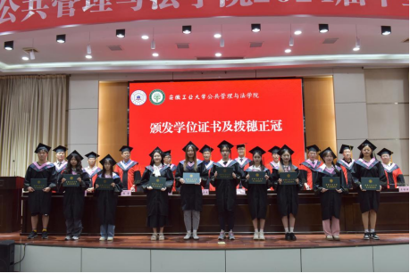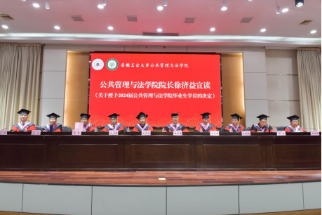 经理徐济益宣读了《关于授予2024届英国365集团官网毕业生学位的决定》。公司全体党政领导、教授委员会及系主任为毕业生们颁发证书、正冠扶苏、行拨穗礼,寓意学有所成。