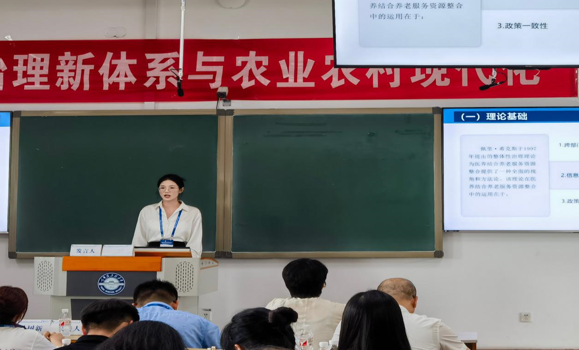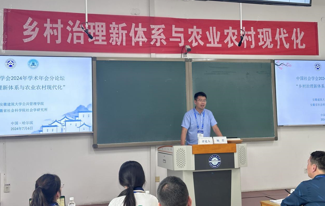 “乡村治理新体系与农业农村现代化”分论坛中,公司2023级公共管理专业研究生胡文超以《医养结合养老服务资源整合研究:基于“五力协调”的分析框架》为题,向与会者深入阐述了其研究成果。随后,安徽建筑大学公管公司教授钱丽对胡文超同学的论文给予了评价,并就其研究内容、方法以及未来发展方向提出了中肯的建议和期许。副经理杨哲应邀担任了本次论坛的点评嘉宾,对部分投稿论文进行了点评。