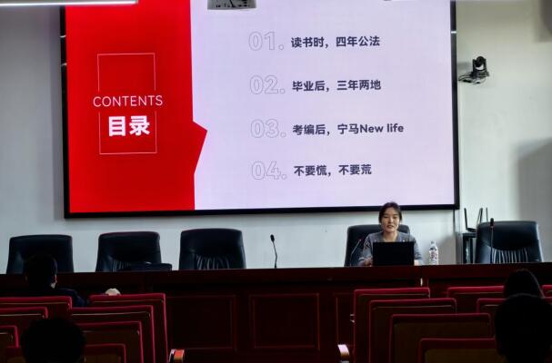 梁转转讲述了自己大学学习和员工工作经历、毕业后在企业工作的经历以及南京考编上岸经历,希望大家“不要慌、不要荒”,要着眼未来、谋在当下、持续学习、自律自强。讲座结束以后,同学们踊跃地提出了各种关于学习和考编的相关问题,梁转转一一进行了认真解答。