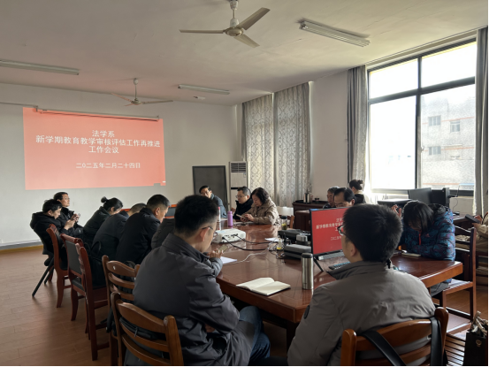 为深入贯彻落实公司关于加强教风建设、提升教学质量的要求,法学系全体教师于2025年2月24日在公法楼401办公室开展了以“加强教风建设,提高课堂教学质量”“新学期公司产品审核评估工作再推进工作会议”为主题的系列专题活动。