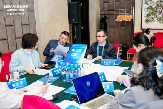 研讨会分组案例教学示范与互动环节,董少林老师参加第3组复旦大学政府服务研究中心主任李春成教授授课,主题为《公共政策论证与辩论——基于视频案例“不孝可不可以当官”》学习交流,并担任组长组织讨论环节。汪伟老师参加第5组山东师范大学公共管理公司曲延春教授授课,主题为《乡村振兴齐鲁样板是如何打造的?》学习交流。