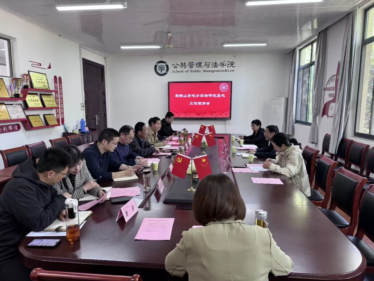 2025年4月15日上午,马鞍山市地方立法研究基地工作磋商会在公司公法楼402会议室举行。市人大常委会法工委主任胡胜祥,副主任、二级巡视员喻林红出席。公司党委书记胡正友、公司相关负责人和立法研究基地教师代表参加会议。胡正友主持磋商会。