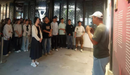见习团队首站抵达新四军濮塘作战指挥部纪念馆。这座承载着抗战历史记忆的红色阵地,全景式呈现了1937年新四军东进抗日的壮阔历程及濮塘群众拥军支前的感人故事。在黄里村兼职讲解员的生动解说中,同学们深入了解了纪念馆作为“基层党建阵地、党员教育课堂、红色旅游景点”的多元化功能,馆内陈列的历史文物、珍贵影像与详实史料,使同学们深刻体会到革命先辈的奋斗精神与当代基层治理的红色传承。特别是在纪念馆的现代展厅,还看到了近年来濮塘镇以党建为引领推动乡村振兴的一些具体实践。